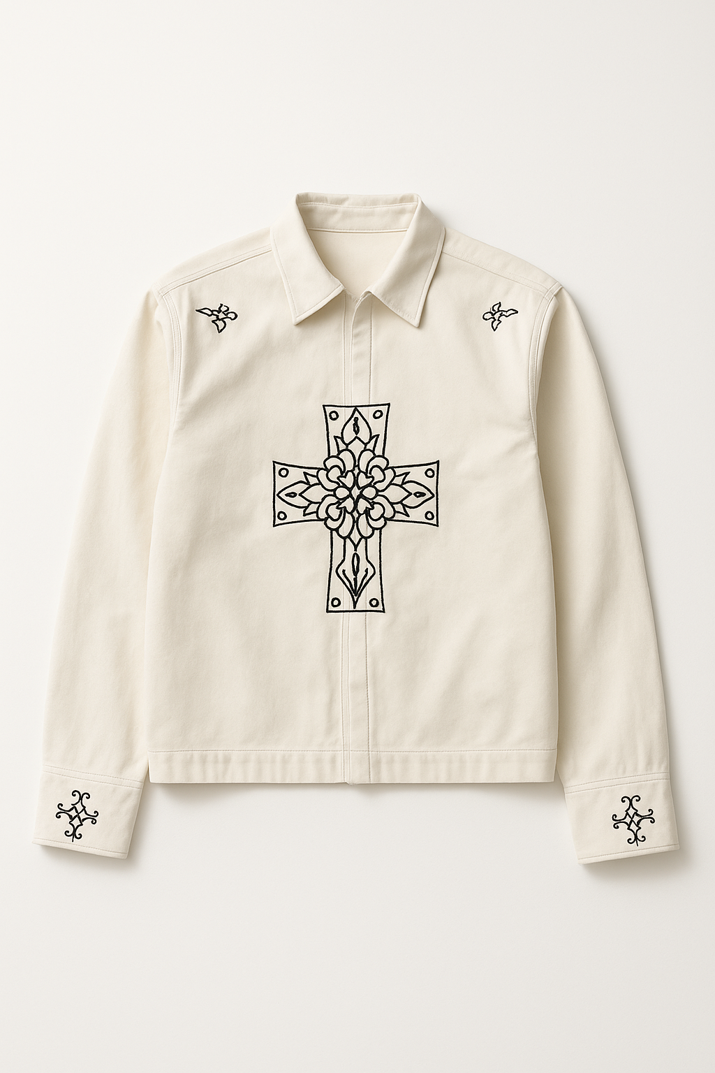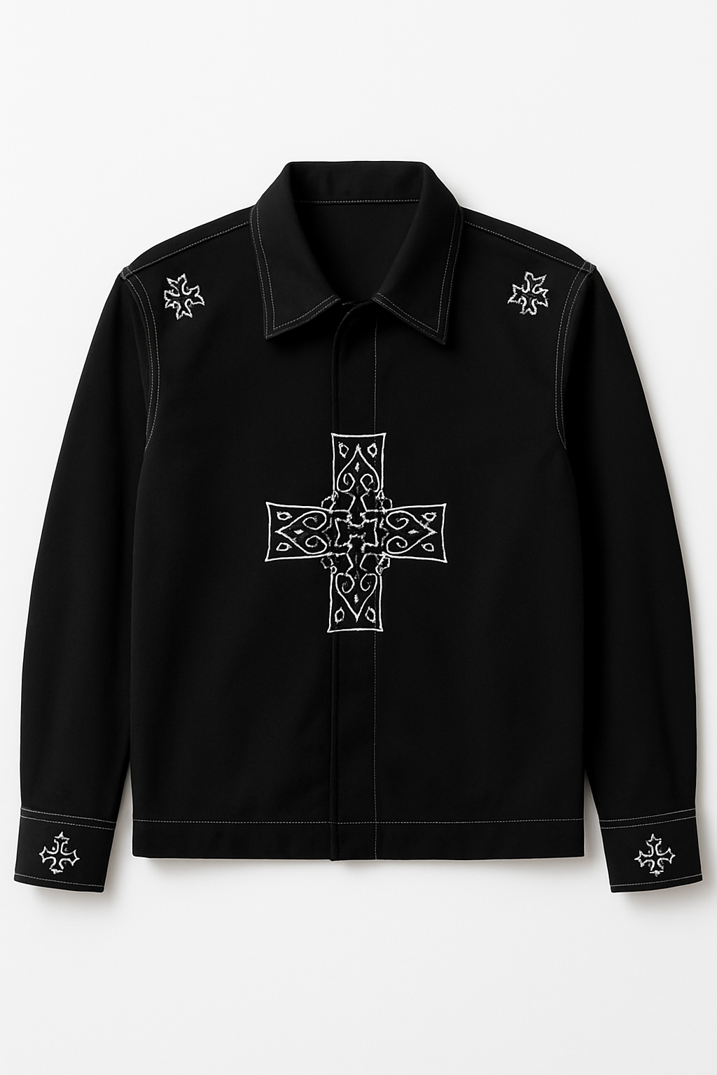 The shacket counterpart of our best-selling Cross Logo Embroidered Shorts. Dropped shoulders, thick silhouette, and the bold logo embroidery sitting loud on a breathable streetwear shell.