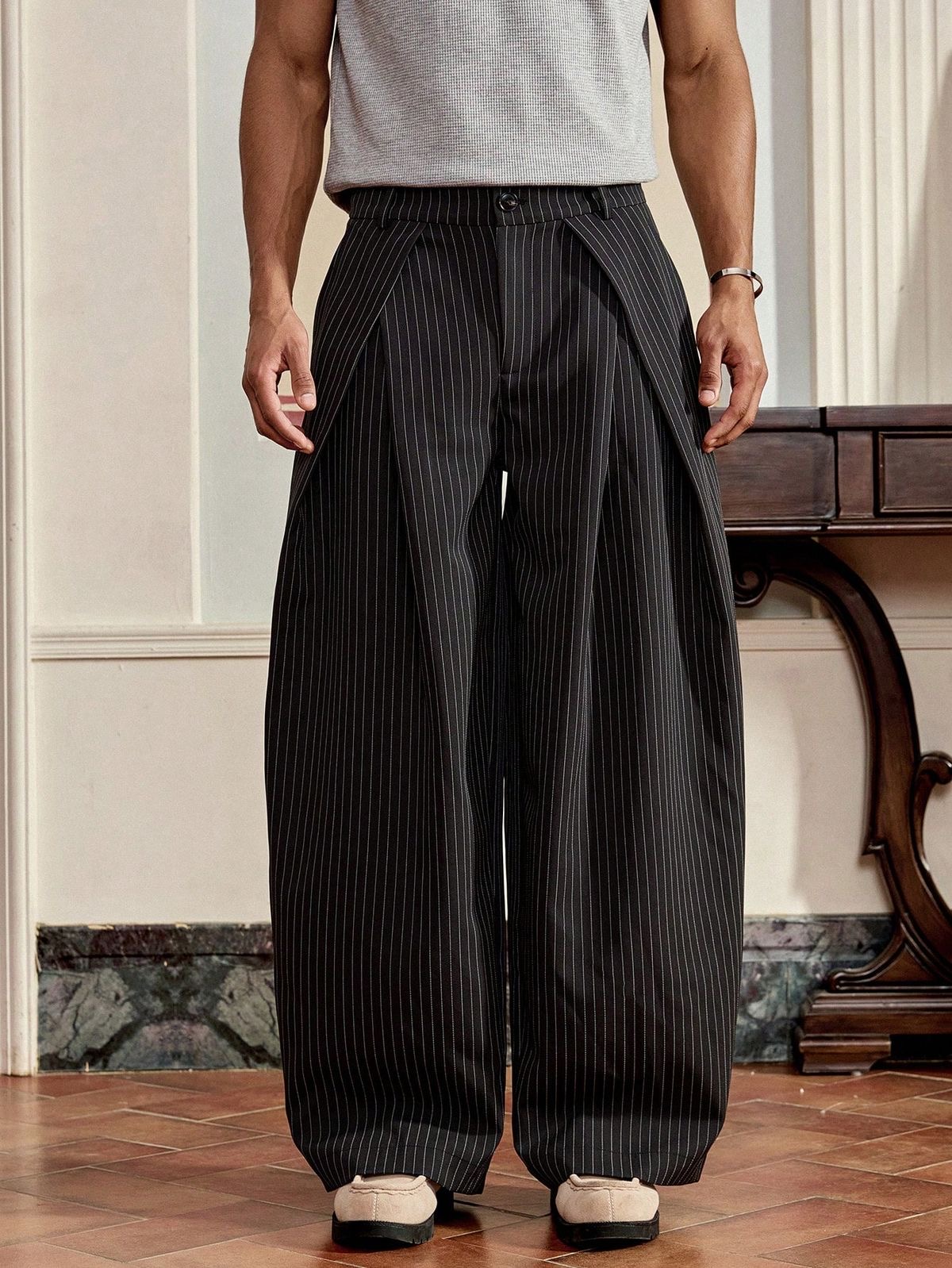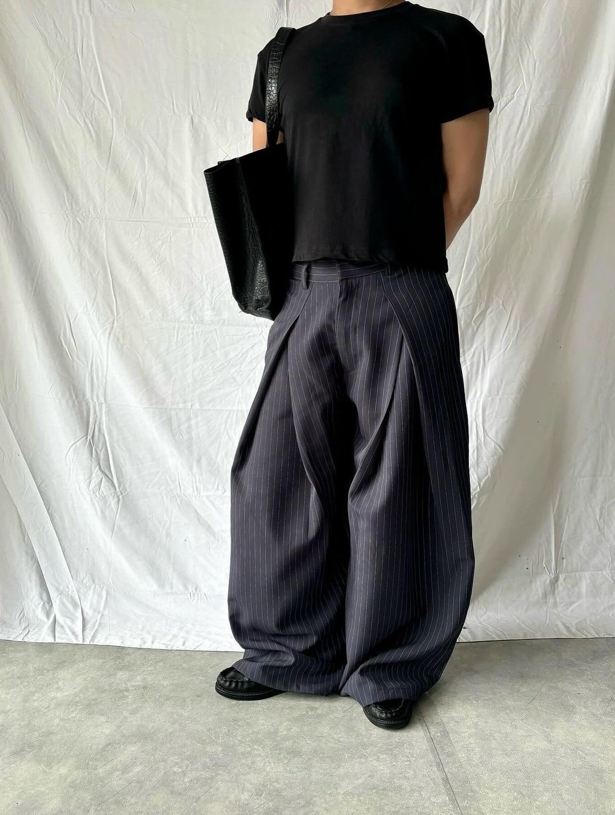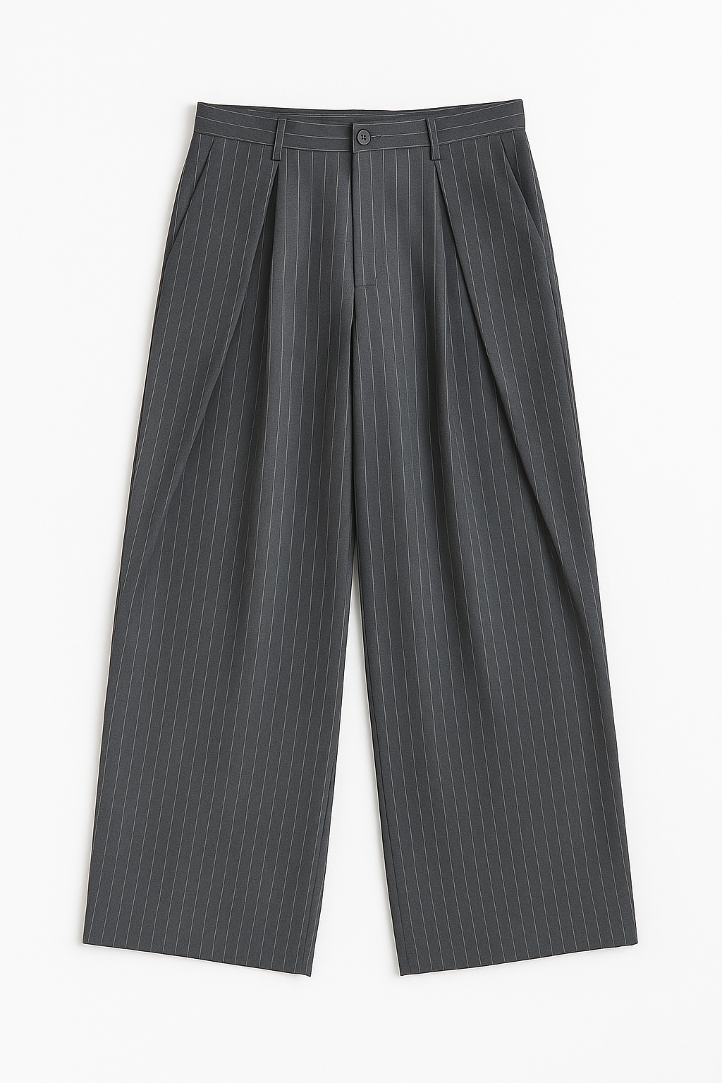 Step into effortless style with our baggy, pleated & double-pleated pinstripe pants, crafted from premium cotton-poly fabric for the perfect balance of comfort and durability. Designed with a relaxed silhouette and trend-forward detailing, these pants give you that versatile edge—whether you’re dressing them up or keeping it casual.